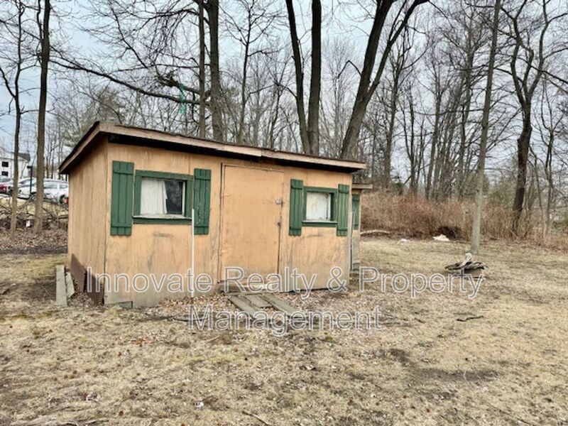 Bathroom has standing tub, toilet, and vanity style sink. The side shed, immediately off of the kitchen, has hook ups for washer/dryer.