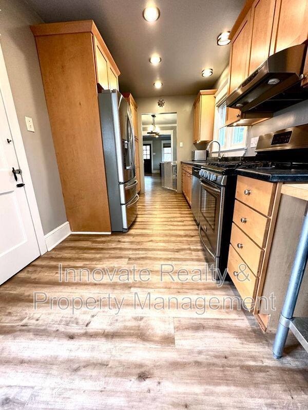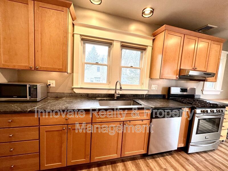 Welcome to 710 Edgehill Road. This updated single-family home features hardwood floors, a fully equipped galley kitchen, a convenient first-floor bedroom and full bath, plus two spacious bedrooms and a second full bath upstairs. Enjoy a raised deck, walk-out basement with washer/dryer, and a private patio. Driveway fits 4 full-size vehicles! Pet-friendly considered. $3,000/mo – residents pay gas, electric & water.